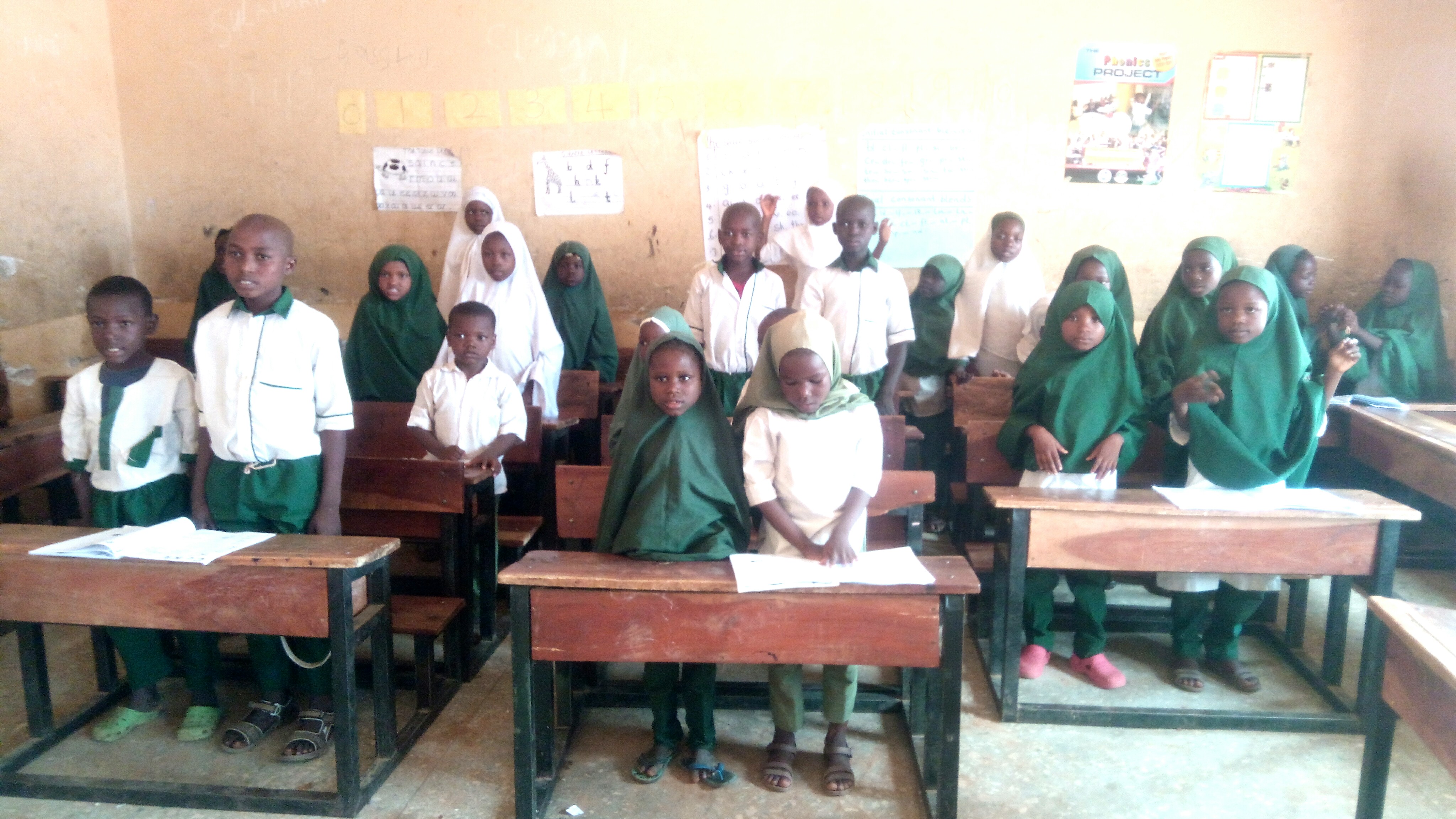 A primary one pupil of the school, Fauziya Abubakar, who demonstrated how to read and write simple words, said that she learned fast because the teachers use songs and sounds to teach them.