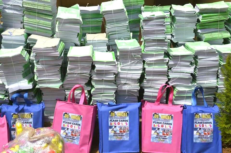 The instructional and learning materials include about 50, 000 exercise books, 5,000 textbooks, 10,000 charts, 3,000 lesson plan books, tables and chairs and flash cards bags.